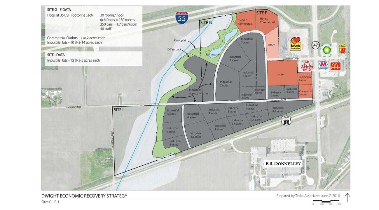 In late 2015, the Village of Dwight received a grant from the U.S. Department of Commerce’s Economic Development Administration to develop an Economic Recovery Strategy. One of the key factors in the Village receiving this grant was the March, 2013 closure of the Dwight Correctional Center which had employed 382 full and part-time correction staff plus many additional jobs in support industries related to the prison. Despite this setback, the Village’s location, transportation access, and community spirit are strong positives that can aid in economic recovery. Teska worked closely with community leaders to craft a strategy which built on the community’s locational strengths and existing cultural resources.