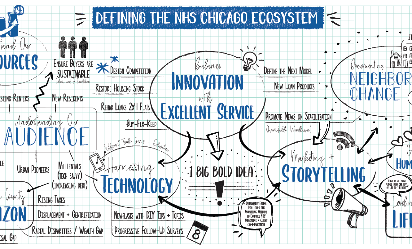Working in close collaboration with NHS Chicago staff, our team designed a process that involved stakeholder interviews, tracking data indicators, a Board and staff survey, and half-day strategic planning retreat. A concise report was prepared to summarize findings with infographics displaying metrics and future goals. As a follow-up assignment, Teska also prepared NHS Chicago‘s 2020 Annual Report.